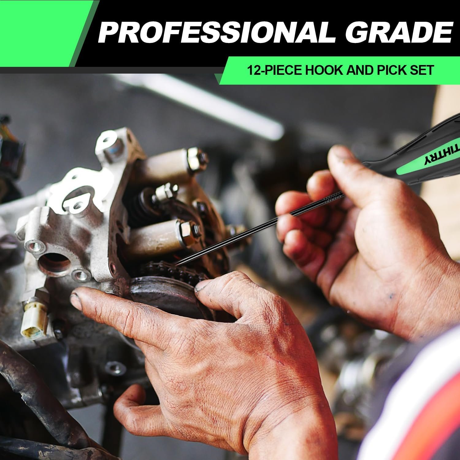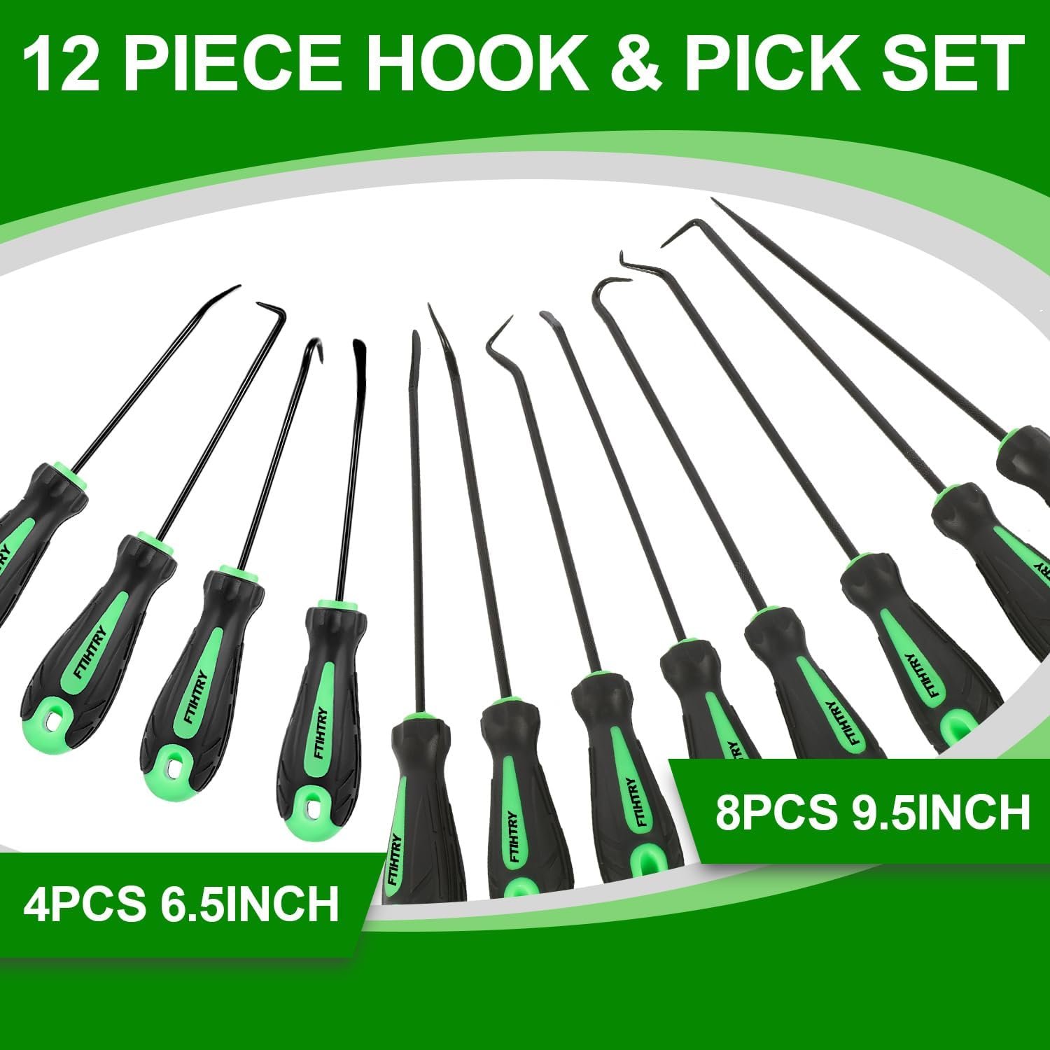 Includes 12pcs – hook, 90-degree hook, 45-degree hook, double angle hook, complex hook, angle hook .4pcs o-ring pick set.