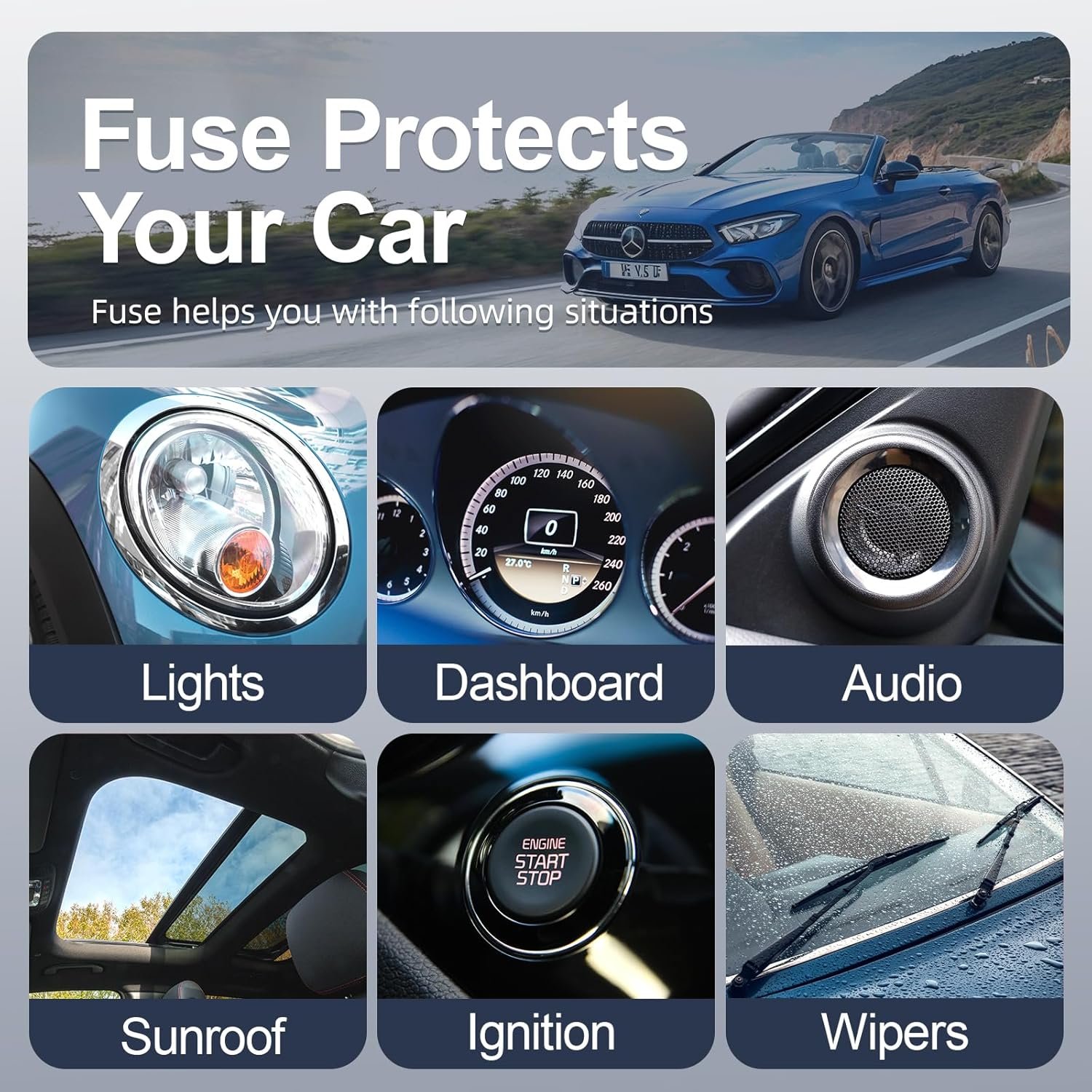 【High quality and wide application】– The fuse is made of environmentally friendly plastic and zinc alloy. The blade fuses are suitable for cars ,RV, truck, motorcycles, boats,SUV, ATV, UTV, Camper RV, Motorcycles, etc.But not for(Ford F,2014 Ram 1500,Hyundai Tucson 2018,RAM 2500,2016 jeep cherokee).