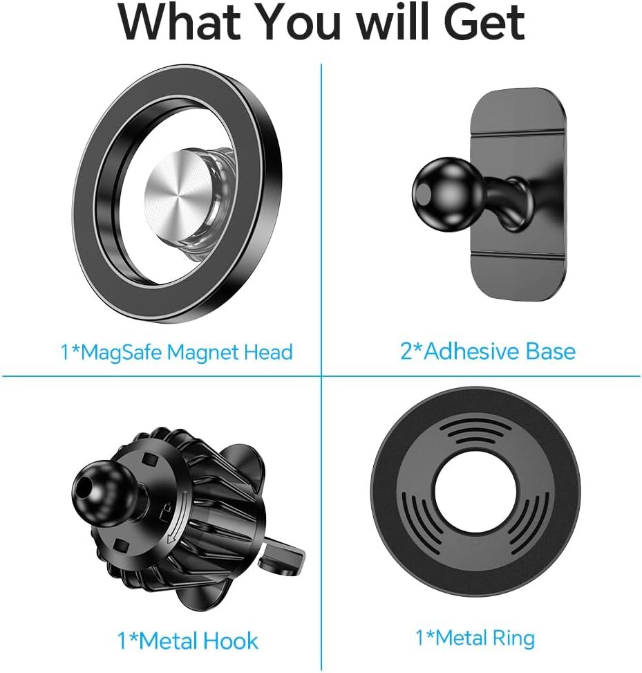 ✅【Designed for Magsafe】 – The most fashionable iphone car mount in 2025 Magsafe is designed for iphone 16/15/14/13/12 Pro Max Mini and official Magsafe cases and other magnetic phone cases and can be fixed directly to these phones without the need to affix metal plates. All Android Phones Will Work: Metal rings are provided; they fit cases and other phones without magsafe