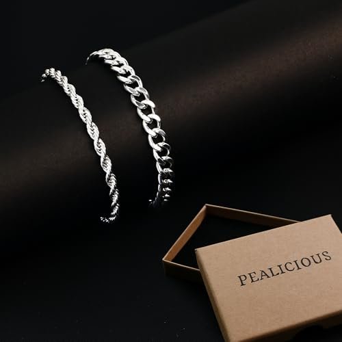 Mens Bracelet: This silver bracelet for men set features a sleek silver cuban chain and a rope chain. Whether worn individually or stacked together, which can offer a versatile style and sophisticated charm.