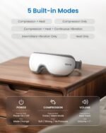 Please note:1. Utilizing advanced air compression and vibration technology, RENPHO Eyeris 1 eye mask is designed to effectively relax and rejuvenate the eye area.2.The product will cause normal noise <45dB during use 3. You can adjust to low compression when you feel too strong 4. Please find out if you are allergic to protein leather before use. 5.This product is not suitable for individuals who have undergone eye operations, have retina conditions, cataracts, glaucoma, etc.