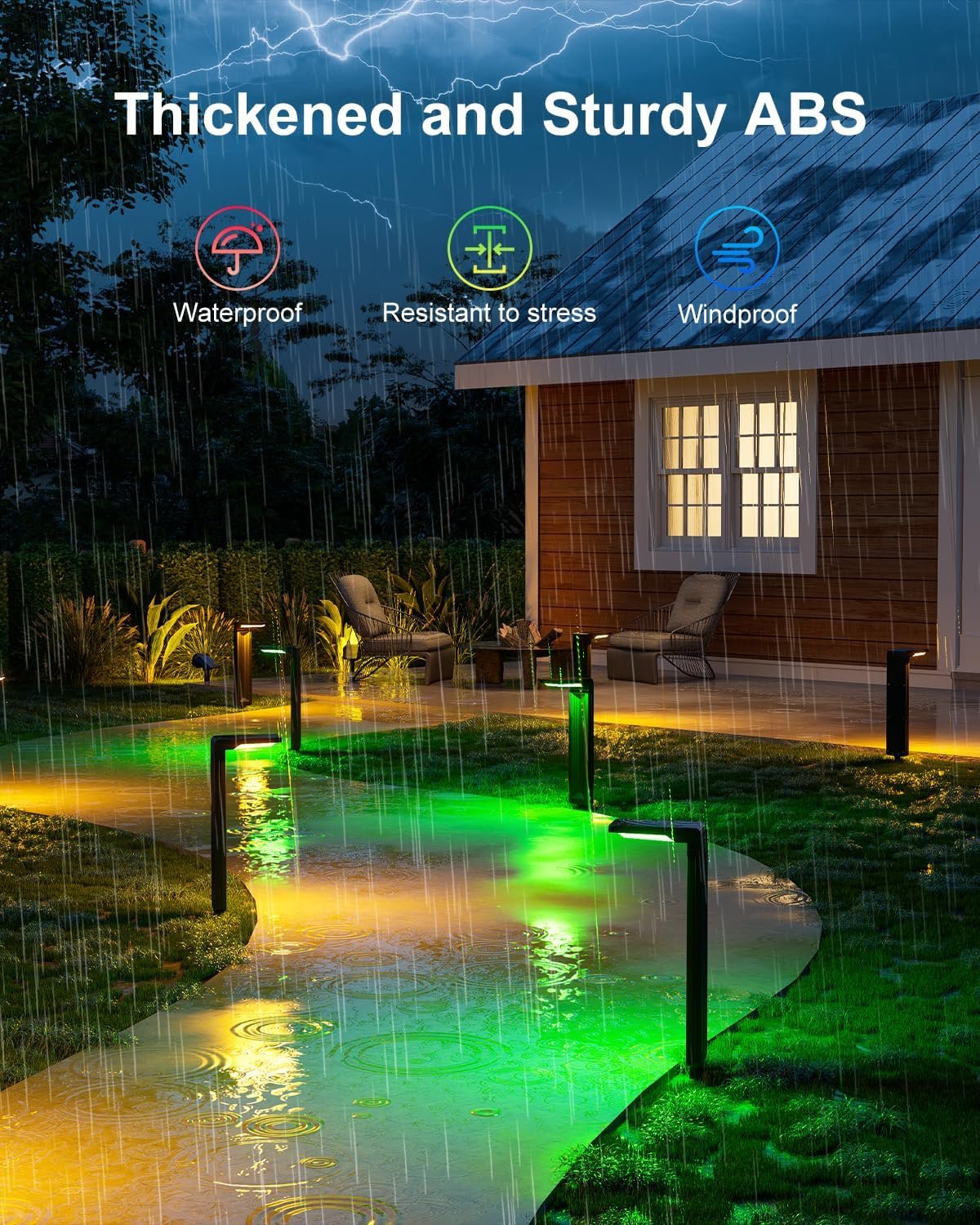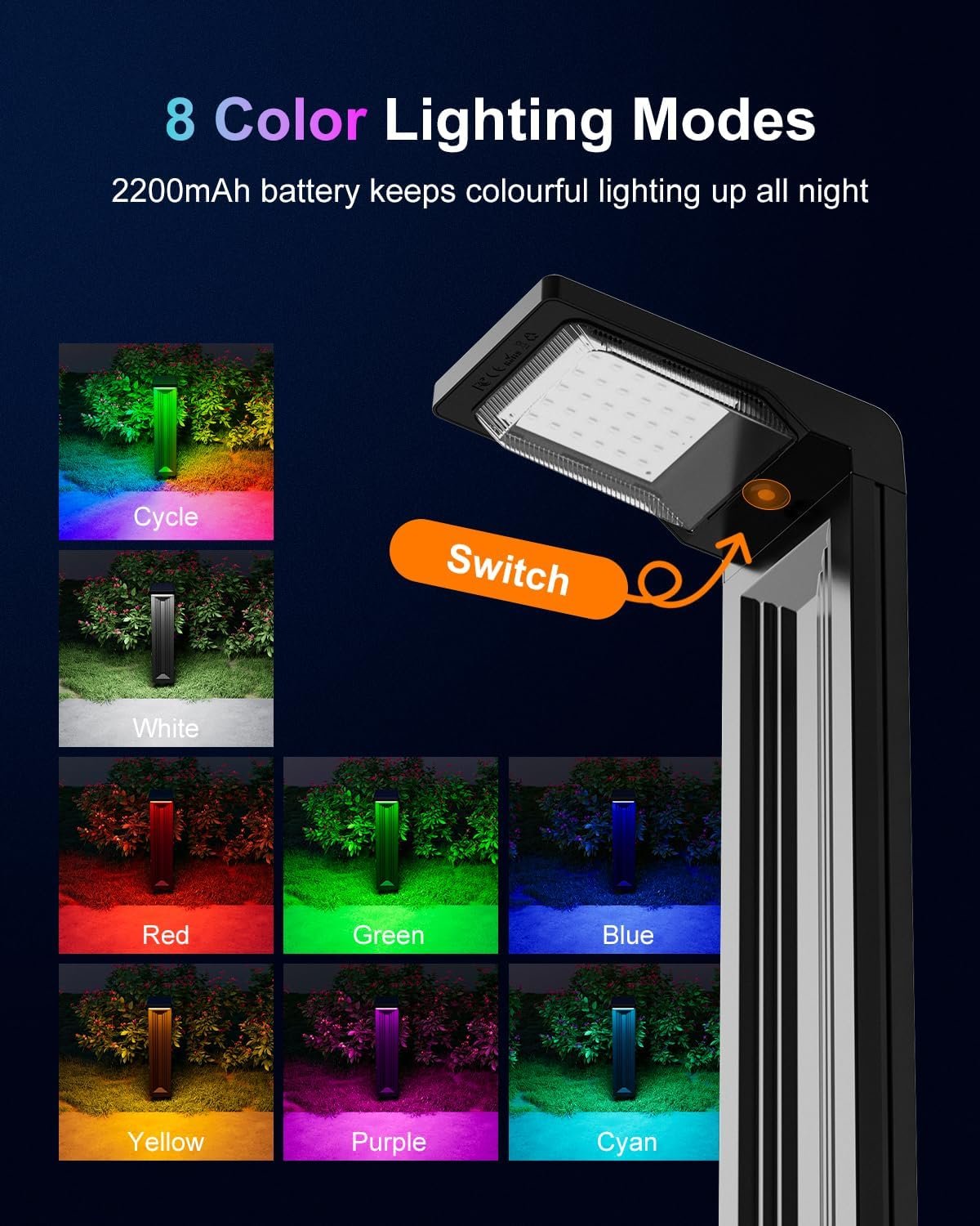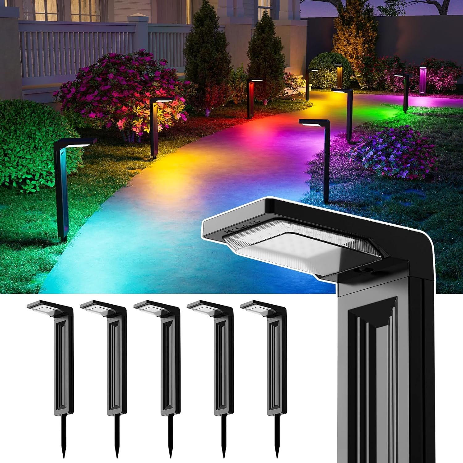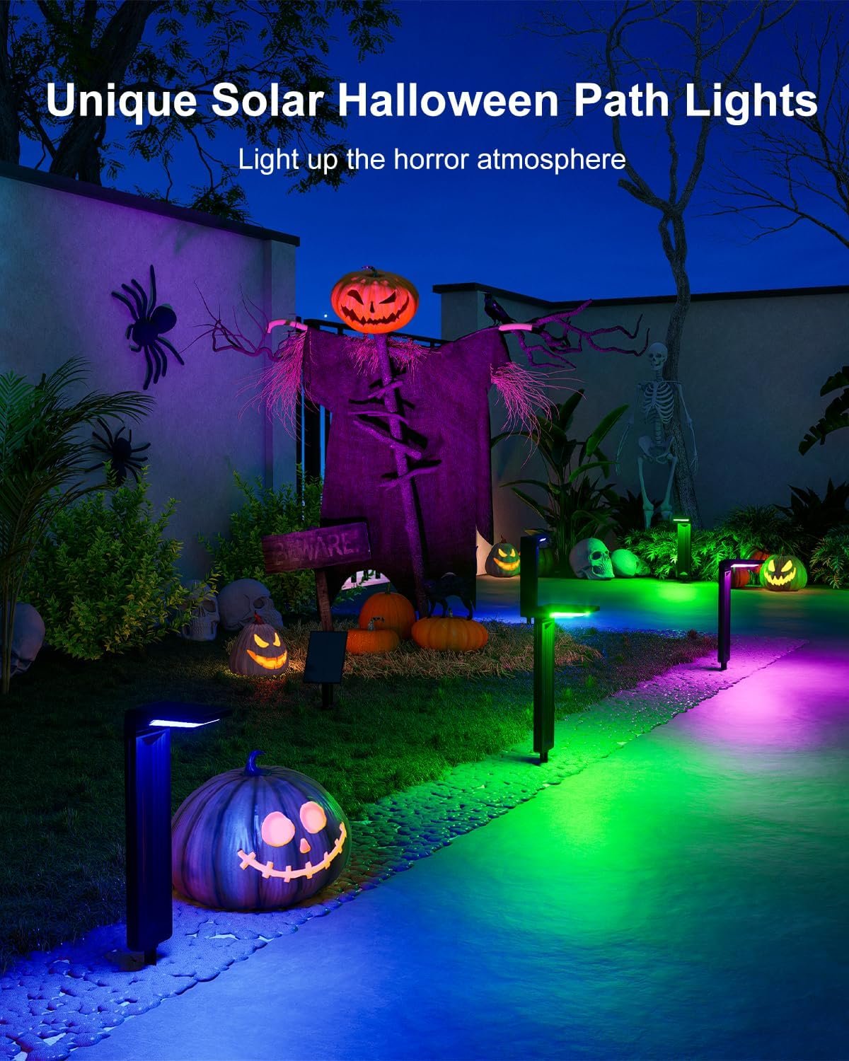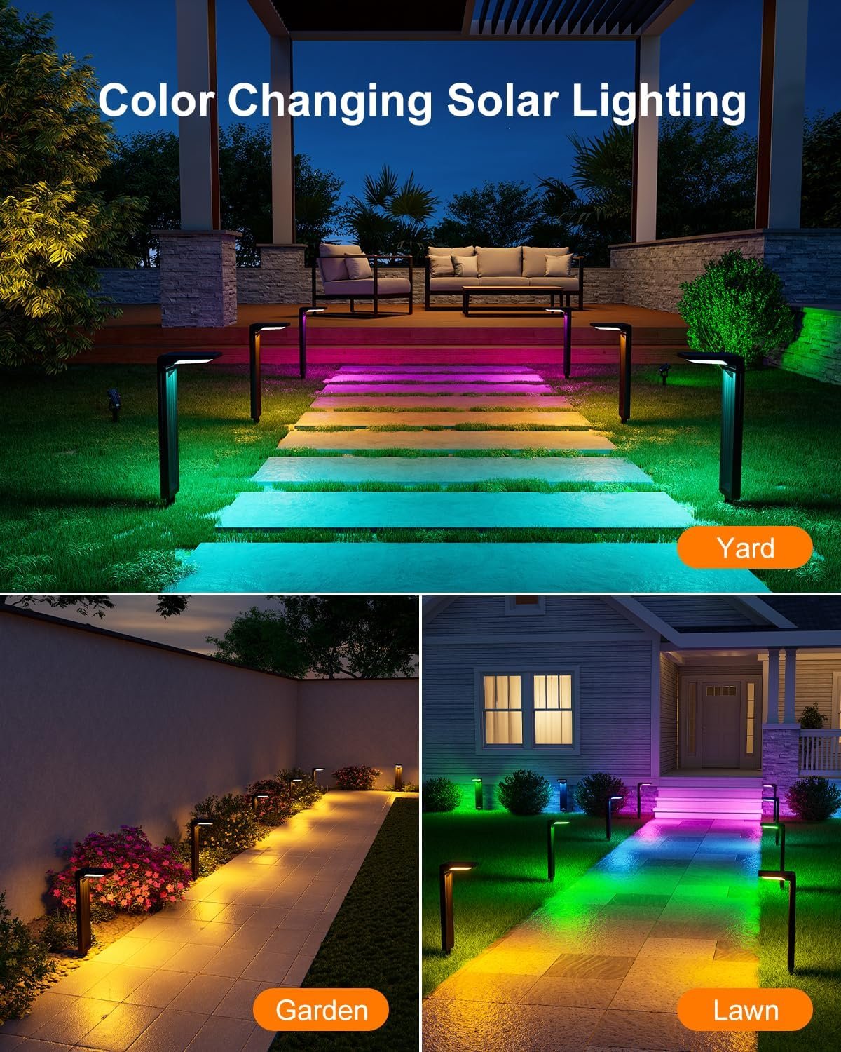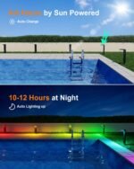 8 Color Modes for Every Festivity: Our RGB solar pathway lights offer 8 vibrant color options, including Auto Cycle (6-8 hours), White, Red, Green, Blue, Yellow, Purple, and Cyan (fixed colors for 10-12 hours). The gentle cycling mode smoothly transitions, creating a soft and inviting glow for any occasion. Whether it’s a warm, cozy Christmas Eve or a fun-filled Halloween bash, these long-lasting lights bring unforgettable color to your holiday celebrations.