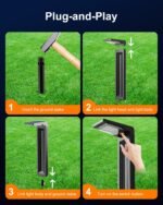 Easy Installation & No Wiring Needed: Our solar yard lights are plug-and-play and can be installed in three simple steps. First, insert the provided ground stake vertically into the ground. Second, snap the light head into the lamp post’s notch (ensure the light head faces the groove on the lamp post). Third, insert the assembled lamp body into the top of the ground stake. These quick installation steps eliminate complex wiring, offering you a more convenient outdoor lighting solution.