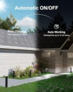 Auto On/Off & Efficient Solar Charging: The solar landscape lights feature automatic on/off settings. Once you set the brightness, the lights turn on automatically at night and charge the battery during the day. Equipped with a large solar panel, just 5 hours of sunlight ensures illumination all night long. Compared to other lights with smaller panels, ours offer superior charging efficiency and longer lighting time, ensuring a convenient and reliable security lighting experience.