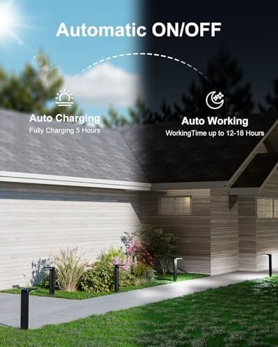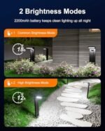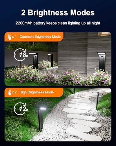 2 Brightness Modes & All-Night Illumination: Our solar pathway lights feature two brightness settings and a 2200mAh high-capacity battery. Press the power button once for constant light mode, providing over 18 hours of illumination, ideal for home paths, yard steps, potted plants, and small statues. Press the power button twice for high-brightness mode, delivering 12 hours of illumination, perfect for large-scale lighting such as outdoor driveways, walkways, and sidewalks.