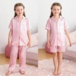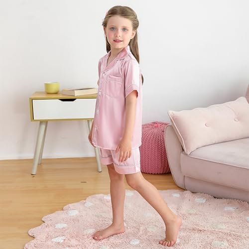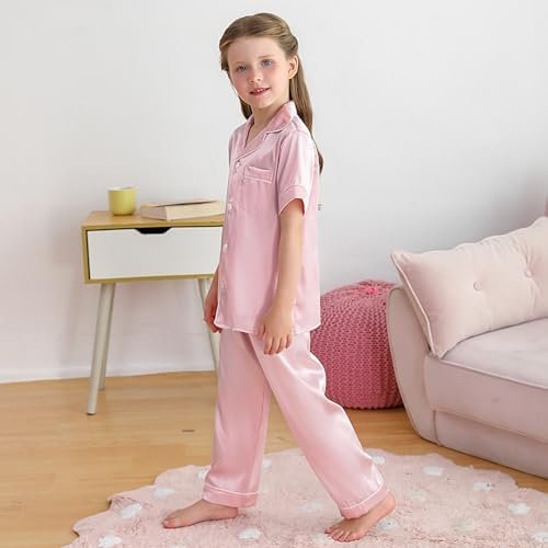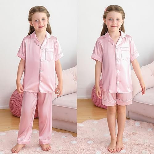 4 Piece Silk Satin Pajamas for Kids Girls Boys, soft, breath and lightweight satin pajamas set