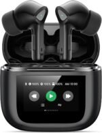 Smart LED Touch Screen Charging Case: The wireless earbuds have a large LED touch screen that allows you to check the date and time, as well as clearly display the battery level and bluetooth connection status of the earbuds and charging case. It also has find headphones, take photos, adjust brightness, adjust time, set alarm, adjust song volume and skip songs, display lyrics and other functions. This makes it super easy to manage music and calls