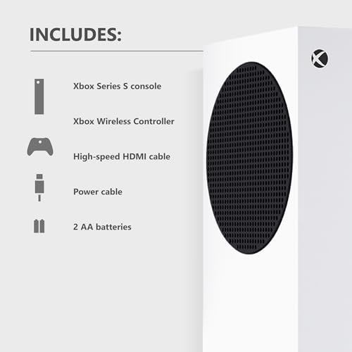 Includes: Xbox Series S console, one Xbox Wireless Controller, a high-speed HDMI cable, power cable, and 2 AA batteries.
